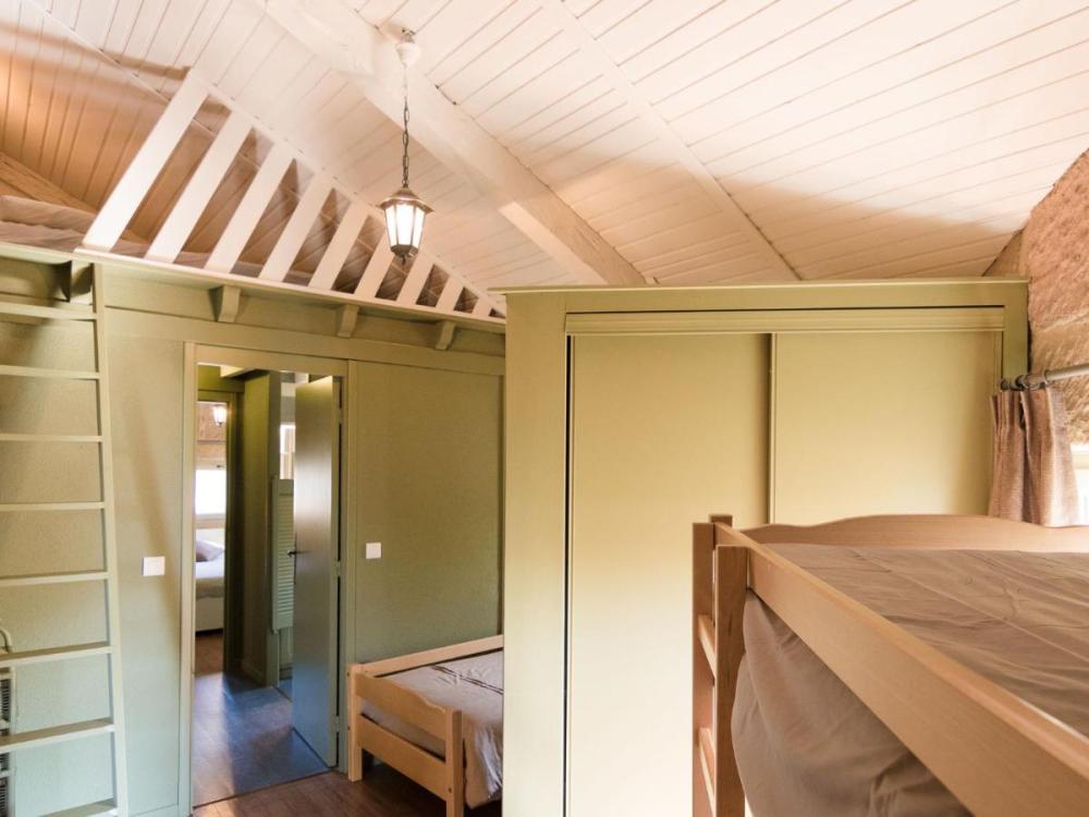 A l’étage, avec accès par l’extérieur, 2 chambres, (une chambre est aménagée avec un lit 2 double et 1 lit simple, l’autre chambre dispose d’un lit superposé et d’un lit simple), une salle de bain, WC.